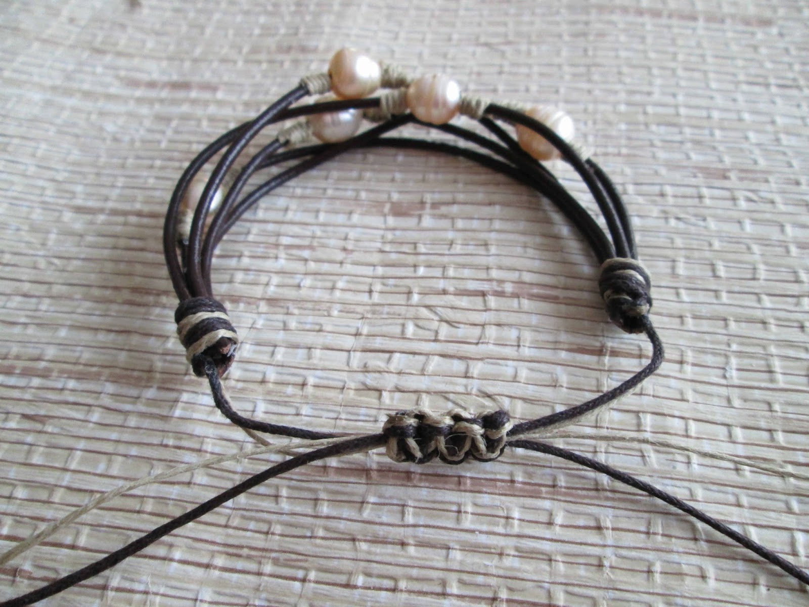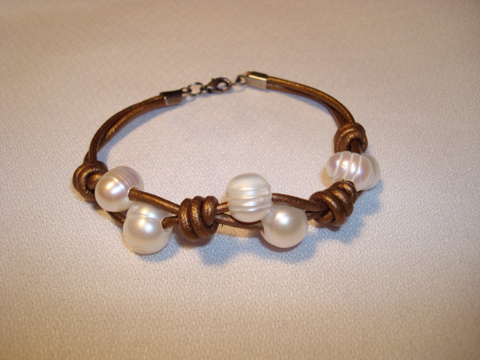 Pulseras Con Perlas Y Cuero. Vamos a ver Cómo hacer una Pulsera de Perlas con Cuero Chan Luu, pero con diferentes materiales. Una vez tengas la pulsera con el largo perfecto y las perlas y las ondas den la vuelta completa a tu muñeca, haz un nuevo nudo con el hilo sobre la cinta y córtalo.